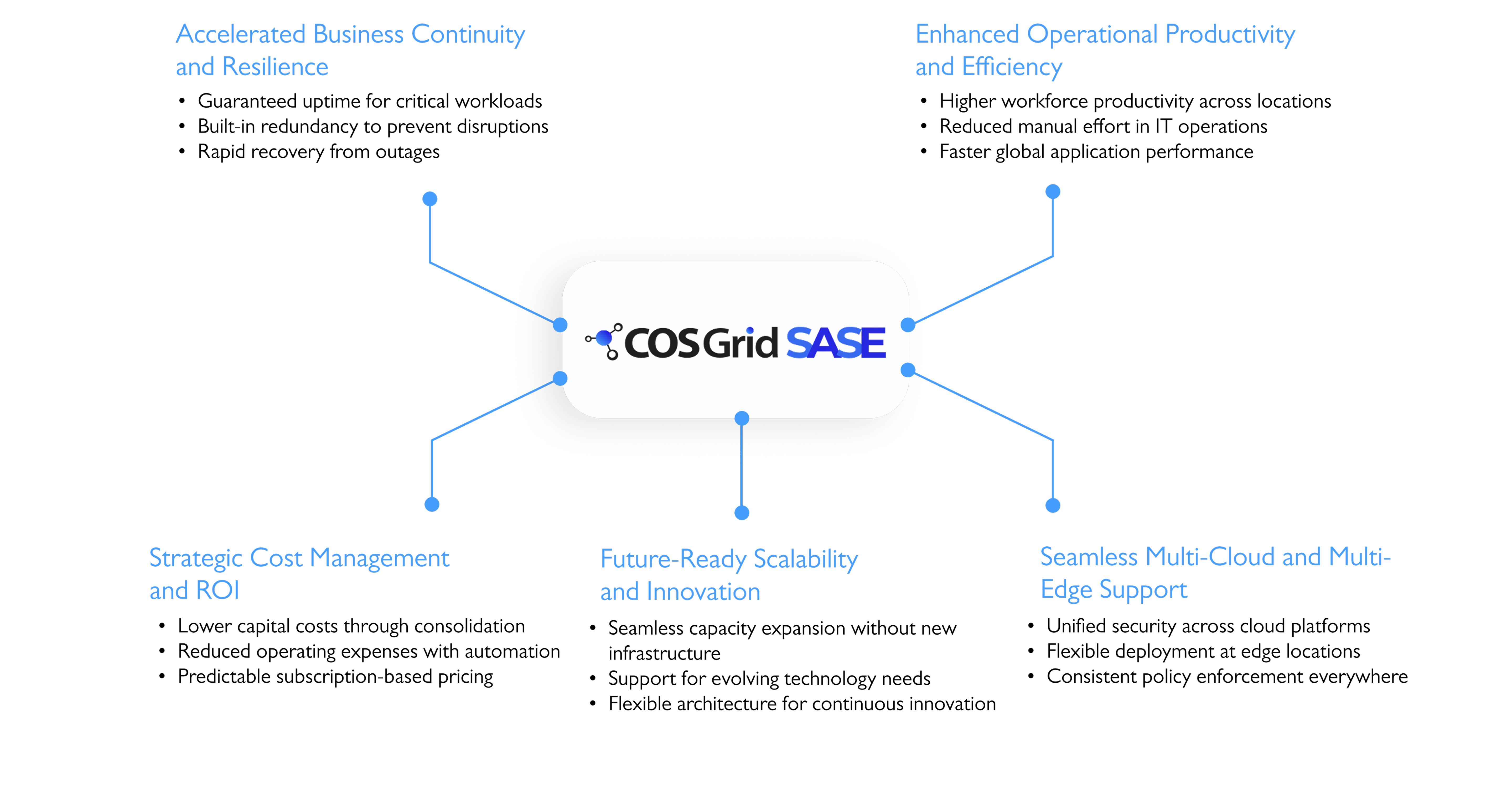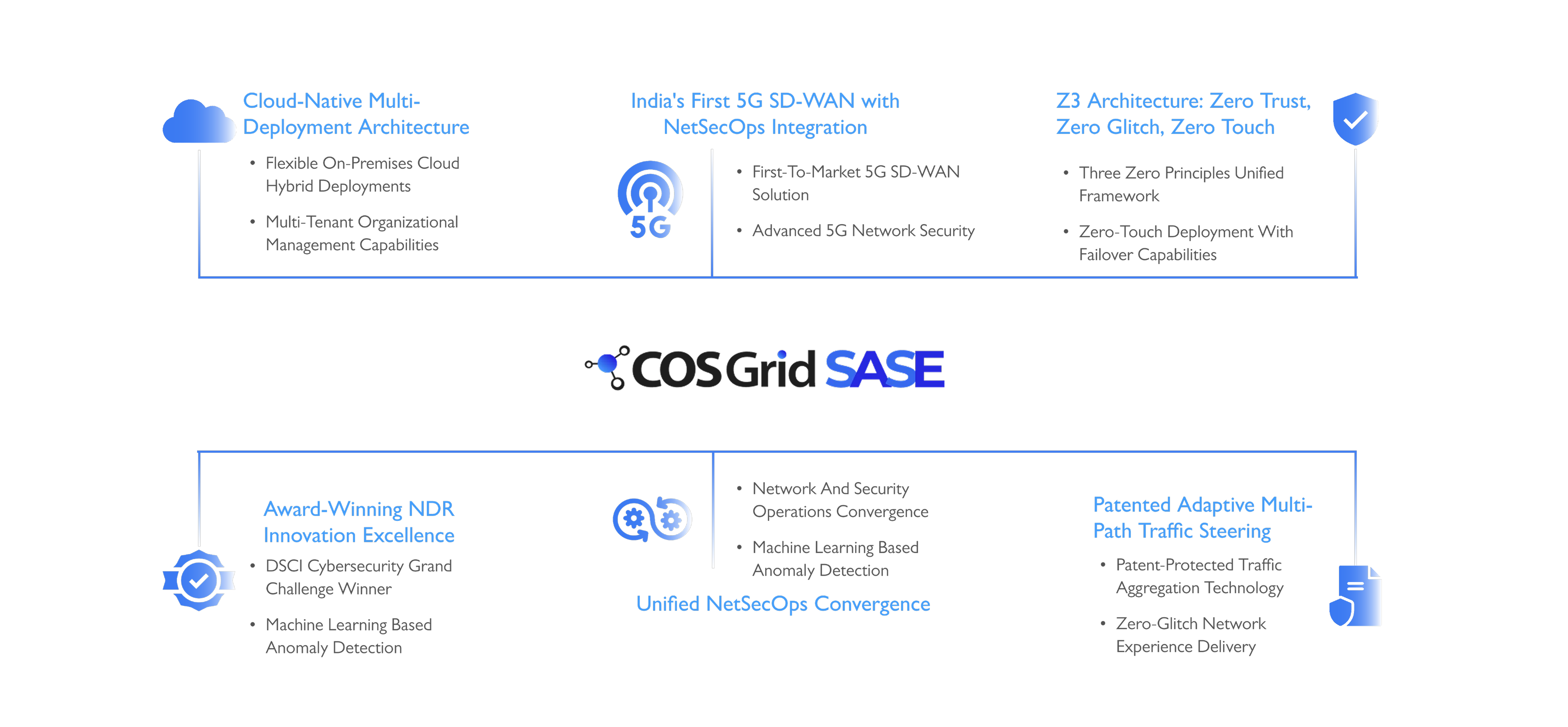 COSGrid Z3 SASE unifies advanced networking and security by combining Secure Access Service Edge (SASE) principles with our innovative MicroZAccess (ZTNA), Secure Gateway, and RefleX SD-WAN technologies. It delivers zero-trust connectivity, robust threat protection, and simplified management for distributed sites and remote teams by leveraging both 5G wireless and wired networks for secure, reliable performance and future-ready flexibility