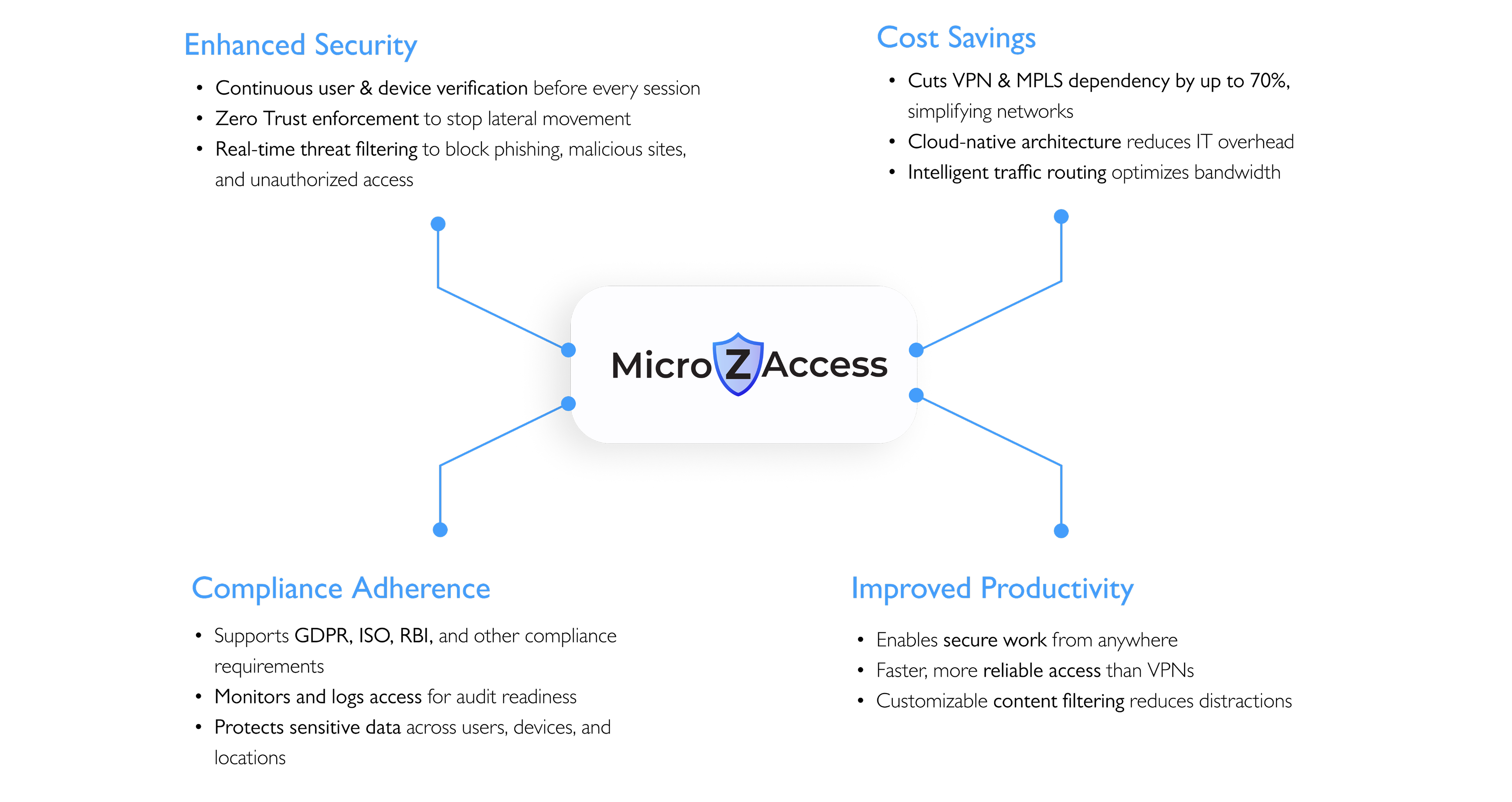 An alternative to VPN that securely authenticates the user and seamlessly connects the device to the Cloud through reliable, high performance and encrypted tunnels that offers security, faster access, enhanced user experience, and easy setup